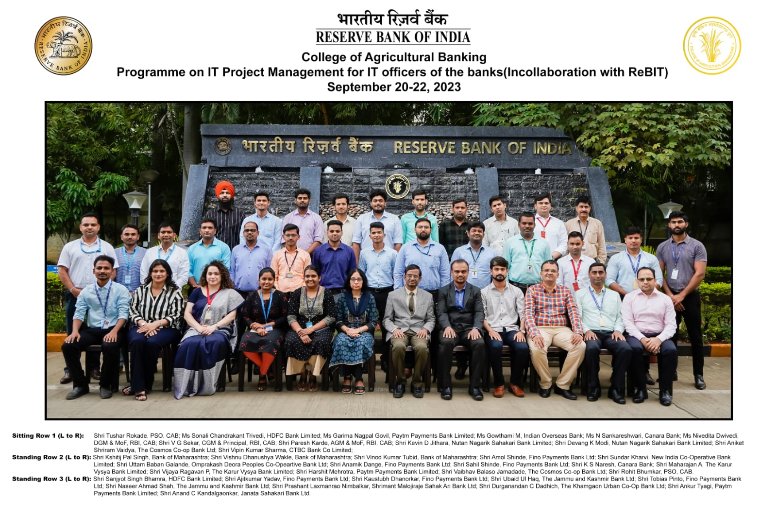 Programme on IT Project Management for IT Officers of All Banks – September 20-22, 2023