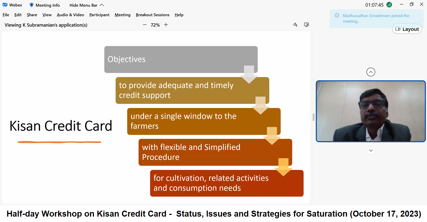 Half-day Workshop on Kisan Credit Card - Status, Issues and Strategies for Saturation (Online mode) (October 17, 2023)