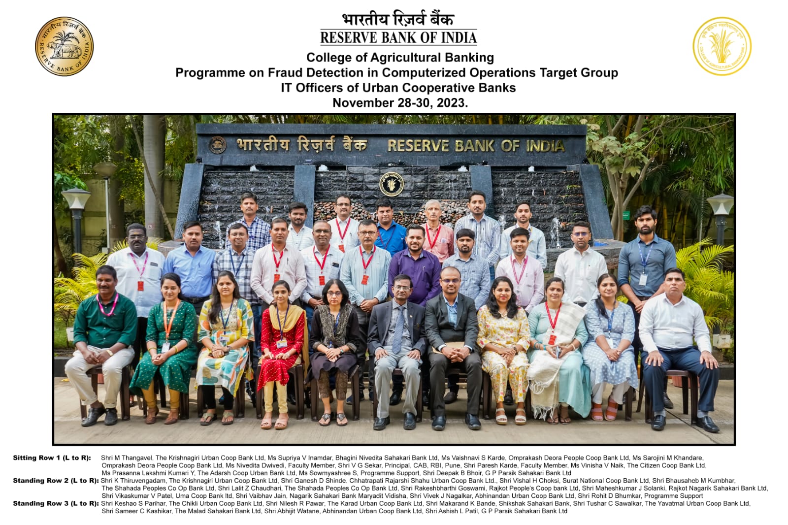 Programme on Fraud Detection in Computerized Operations for IT Officers of all Urban Cooperative Banks - November 28-30, 2023