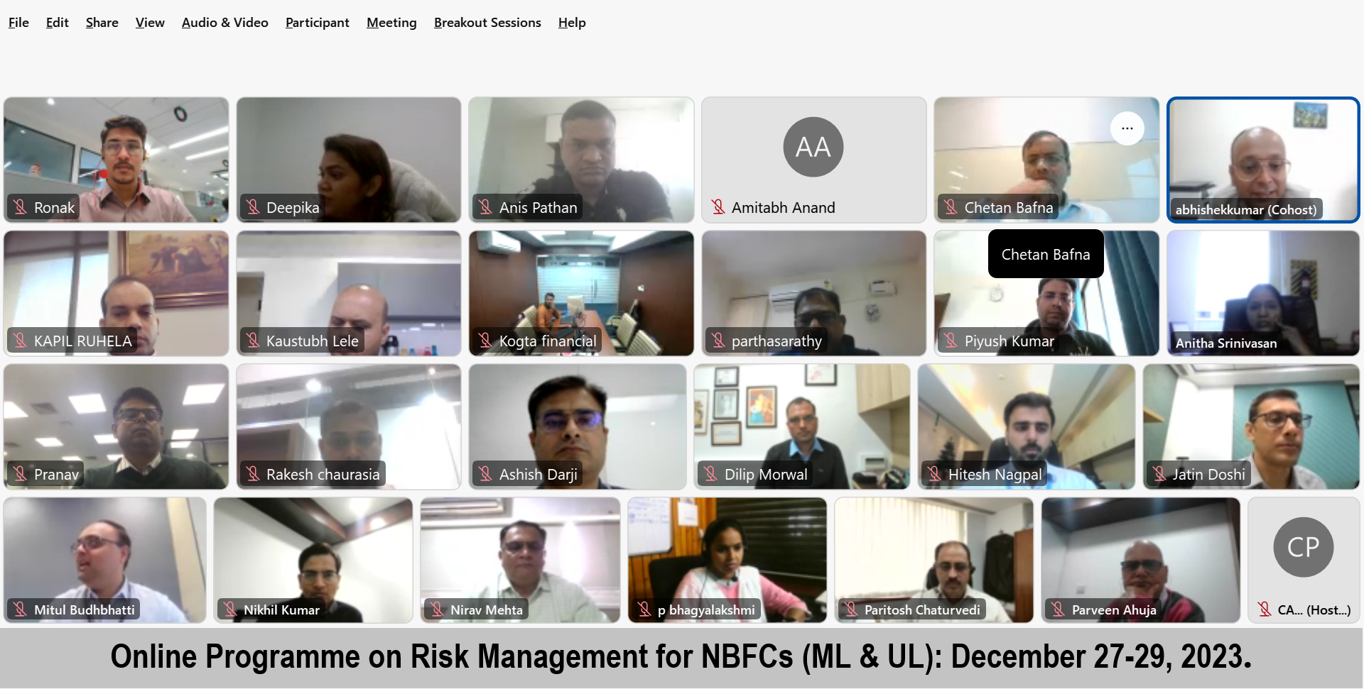 Online Programme on Risk Management for NBFCs (ML & UL): December 27-29, 2023