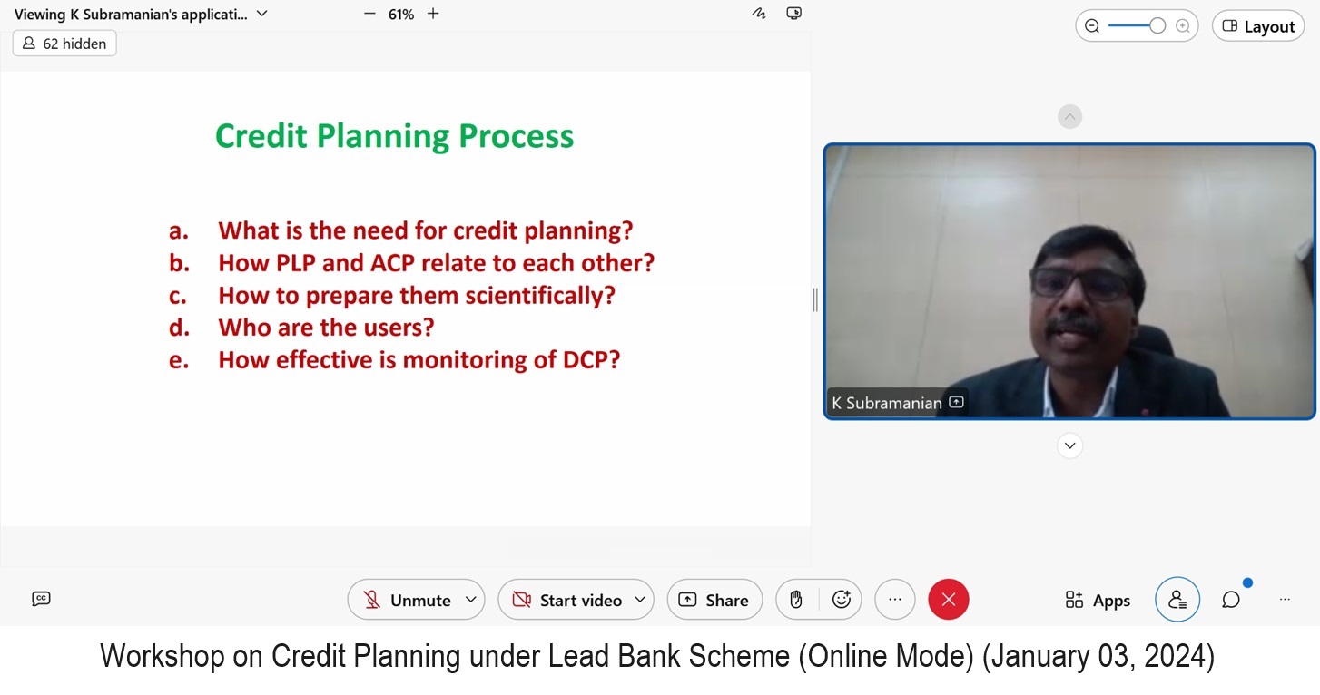 Workshop on Credit Planning under Lead Bank Scheme (Online Mode) (January 03, 2024)