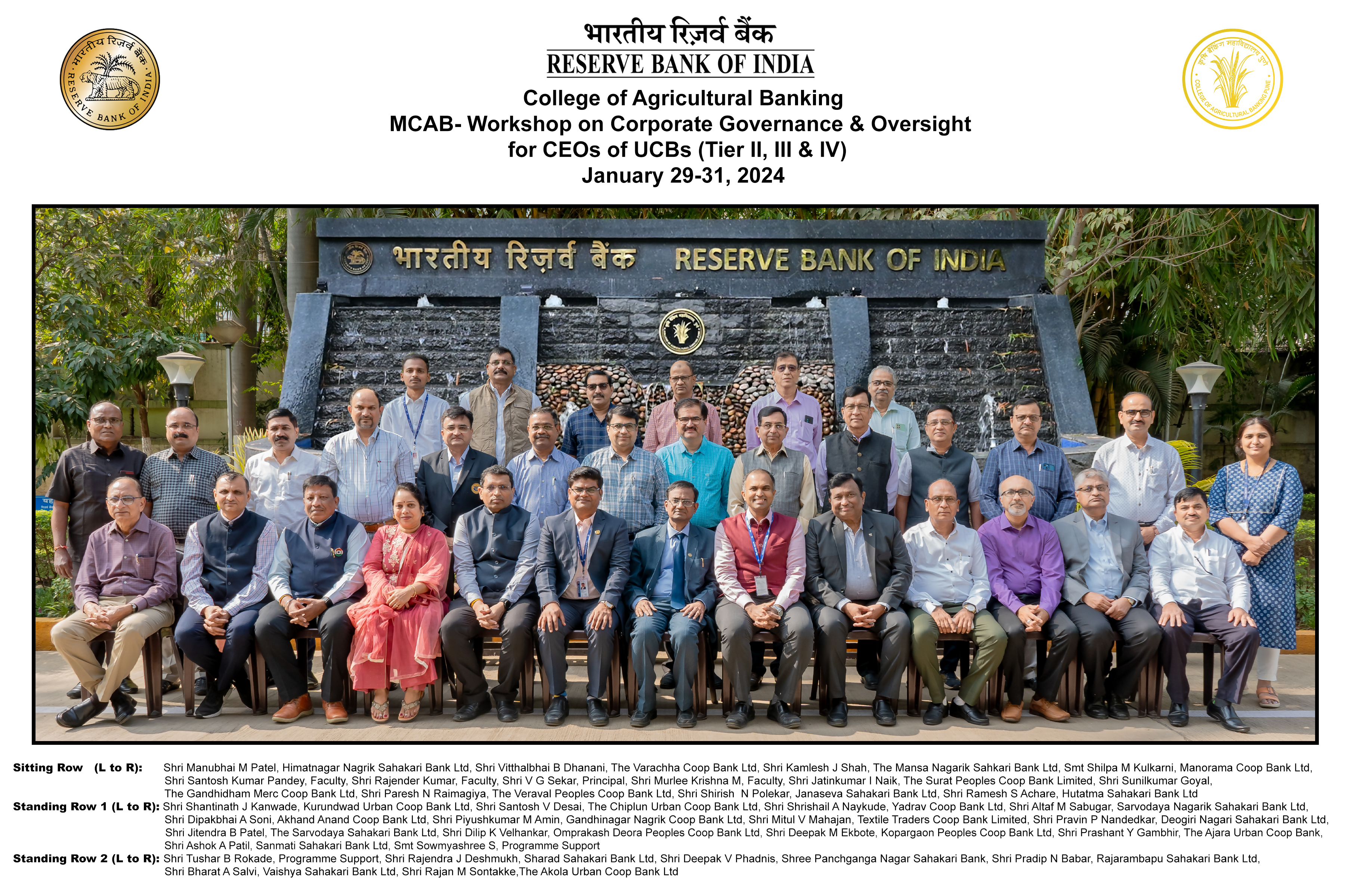 MCAB- Workshop on Corporate Governance & Oversight for CEOs of UCBs (Tier II, III & IV)- January 29-31, 2024: (On-Campus)