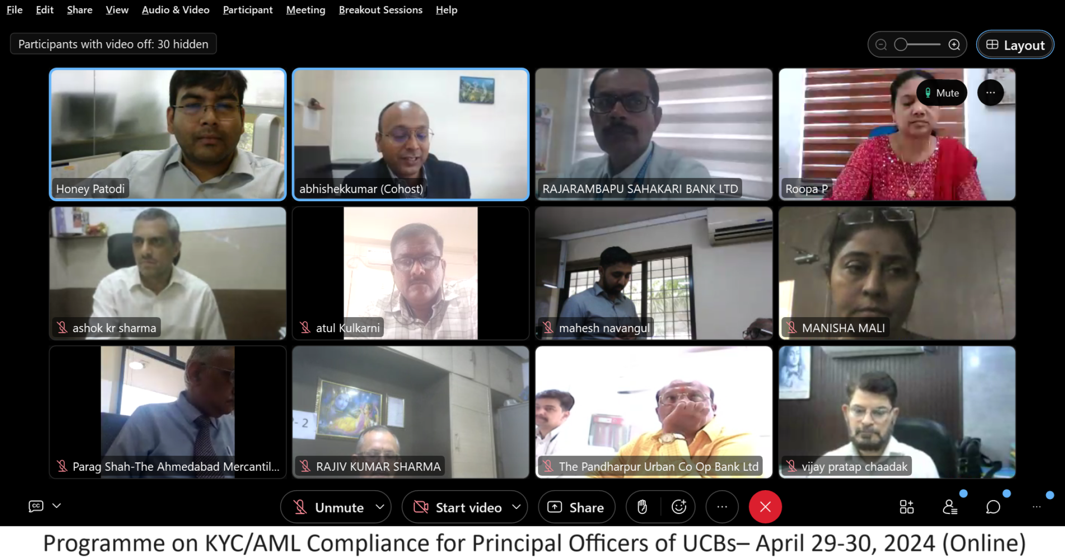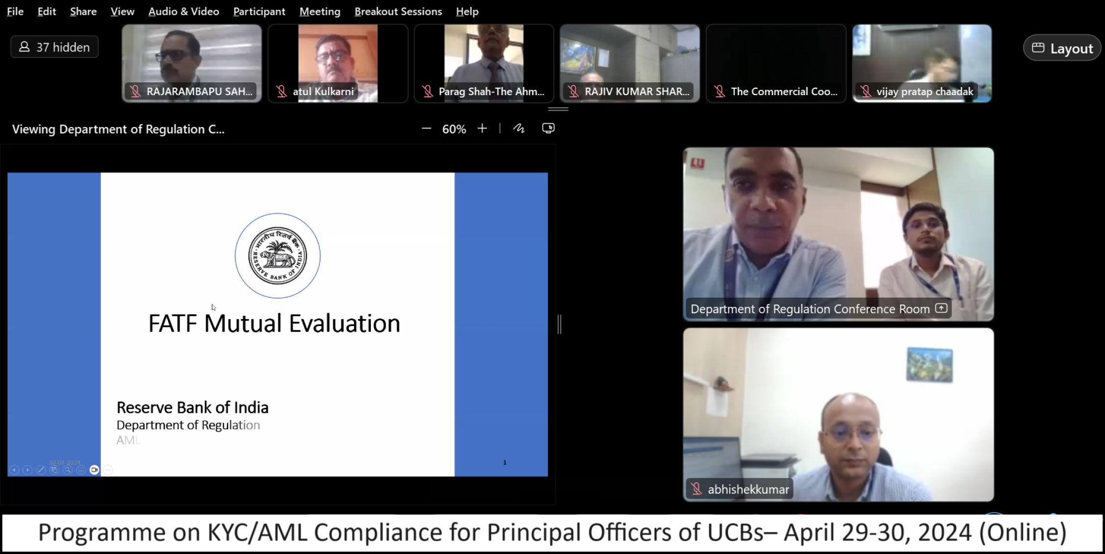 Programme on KYC/AML Compliance for Principal Officers of UCBs– April 29-30, 2024 (online mode)