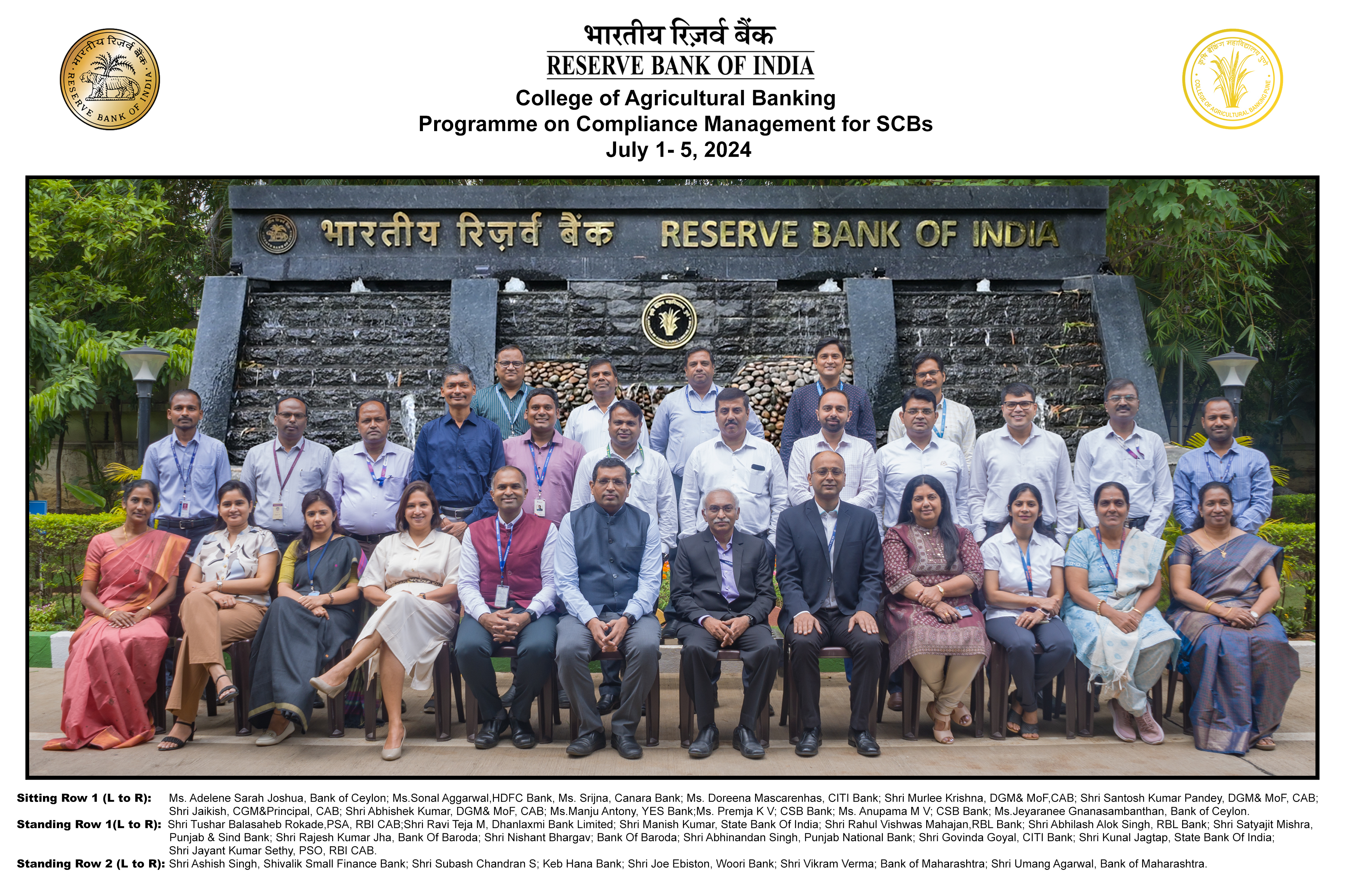Programme on Compliance Management for SCBs: July 1- 5, 2024 (in-campus)