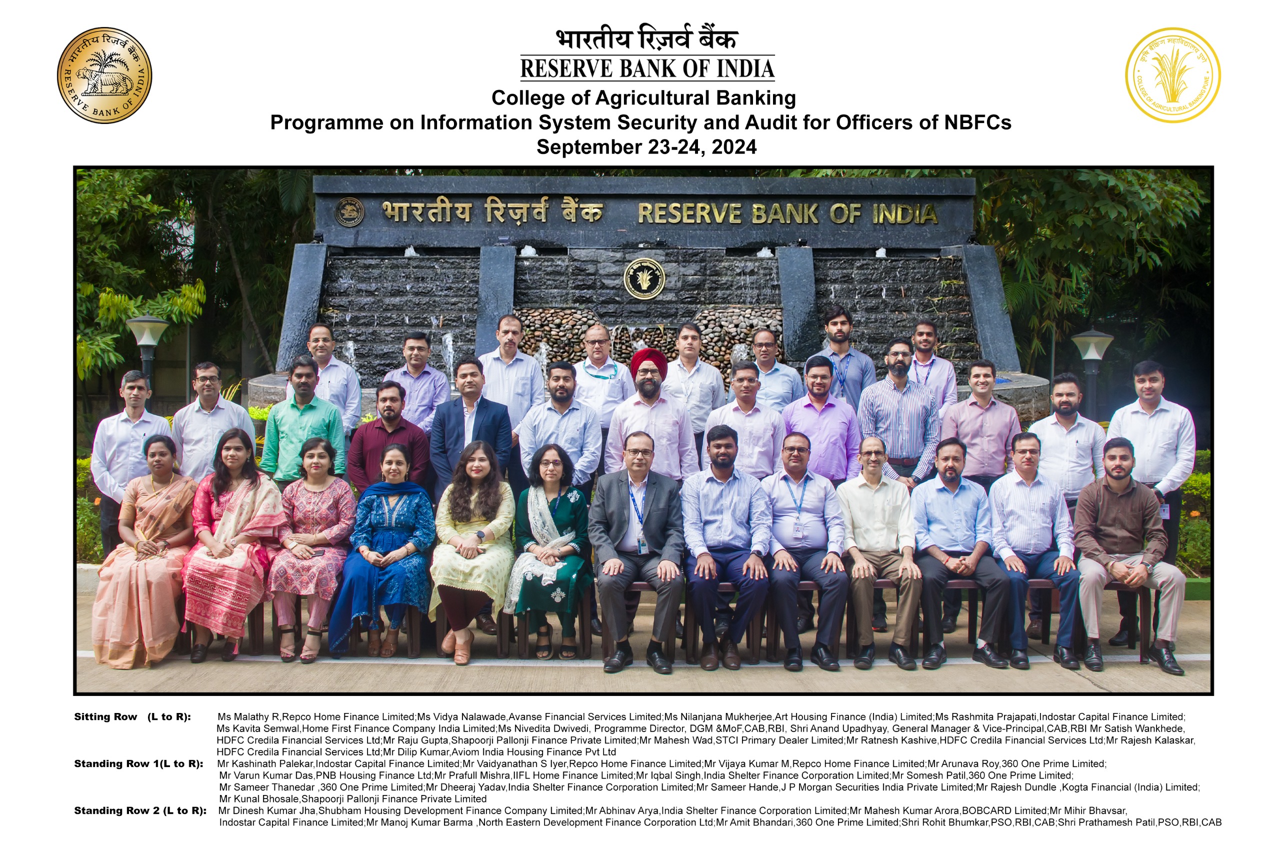 Programme on Information System Security and Audit for Officers of NBFCs – September 23-24, 2024 (In-Campus)